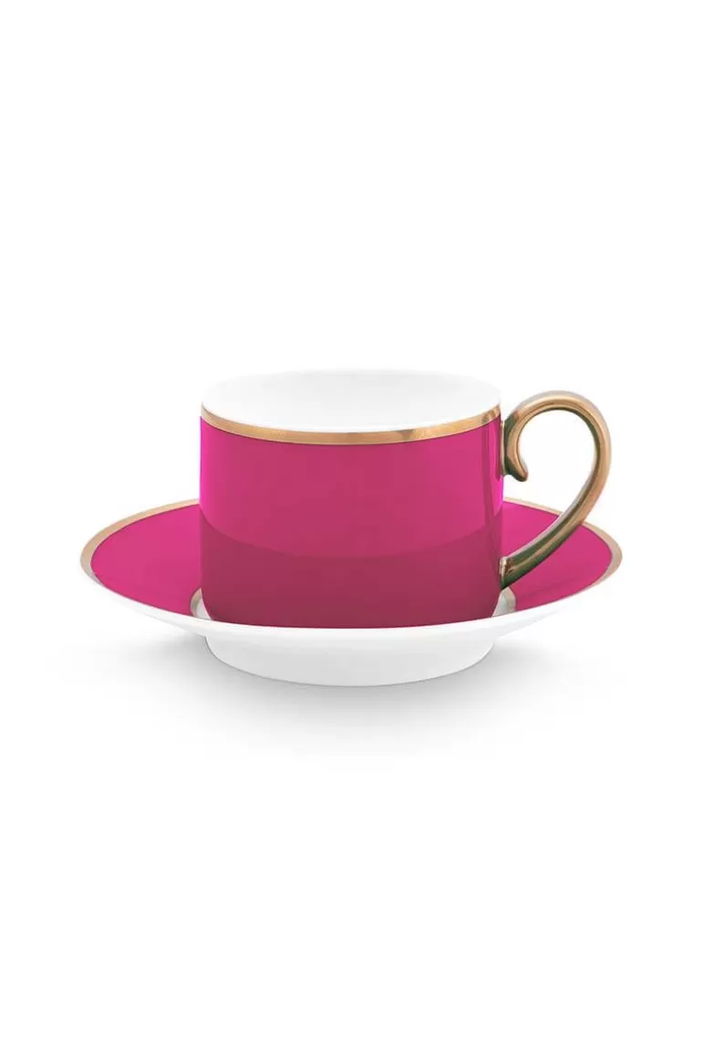 Tasse & Untertasse<Pip Studio Pip Chique Stripes Cappuccino Tasse & Untertasse Rosa/Grun
