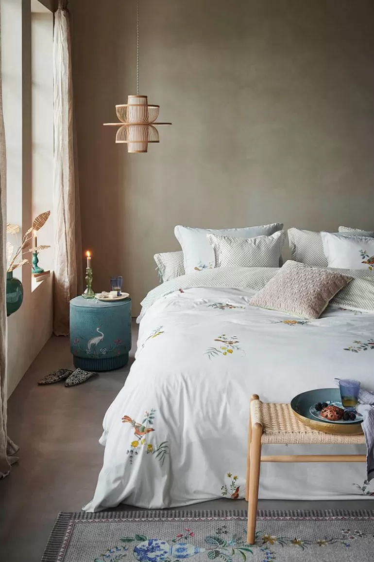 Dieser Schone Bettbezug In Hellgrun Ist Mit Dem Little Birds Design-Design Bedruckt. Diese Bettbezüge Ist Zusammengestellt Aus Verschiedenen Arten Von Verzierten Vogeln Und Blumen Zweigen. Die Ruckseite Ist Mit Einem Bogenmuster Versehen, So Dass Die Bettbezug Beidseitig Verwendet Werden Kann.