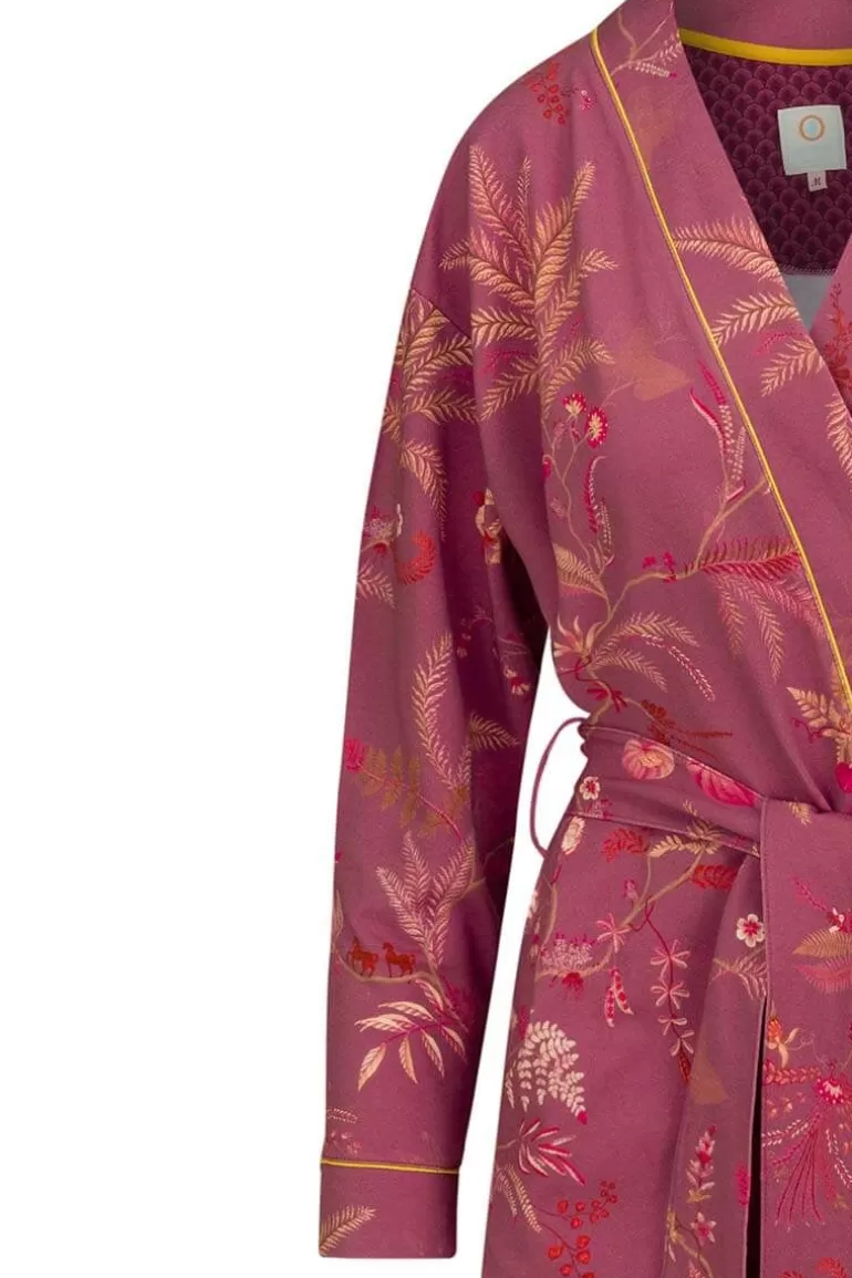 Dieser Kimono In Der Farbe Rosa Ist Mit Dem Verspielten Isola-Design Gefertigt. Das Verspielte Design Hat Einen Raffinierten Druck Aus Mehrfarbigen Zweigen Und Farnen. Die Farben Des Nachthemds Sind Sanft Mit Dezenten Farbakzenten. Der Kimono Hat Einen Passenden Gurtel.